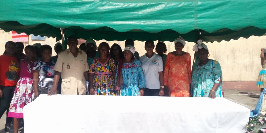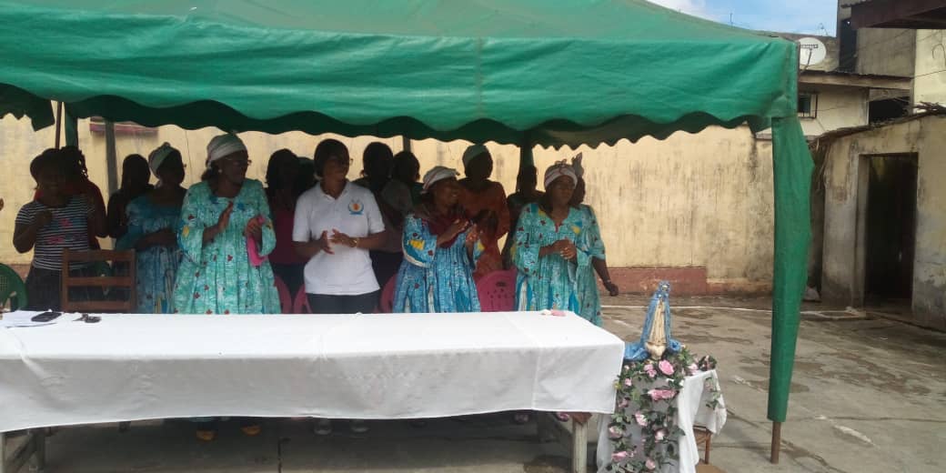Le mot de bienvenue du représentant de la prison a ouvert cette articulation qui a fortement remercié la Communauté pour le choix de cette structure. La Modératrice du Club du Rosaire qui conduisait la délégation, a pris la parole à son tour pour expliquer aux détenus qu’en ce mois consacré au rosaire, il était question de leur apporter le secours et le réconfort de la Très Sainte Vierge Marie, leur Mère qui les aime, de Sainte Thérèse de l’Enfant Jésus et de Son Fils Jésus Christ et saint Joseph. Tout en les exhortant à la prière, elle leur a dit que Dieu les aime tels qu’ils sont et que sa Miséricorde est infinie. Elle a élevé la prière suivie des chants et bien sûr quelques pas de danse ont été esquissés avec nos frères prisonniers. Des moments de grandes émotions inoubliables avec les pensionnaires de cette structure. Par la suite nous avons présenté les dons apportés en les priants d’accepter ce peu qui représente davantage le signe l’amour de Dieu pour eux.