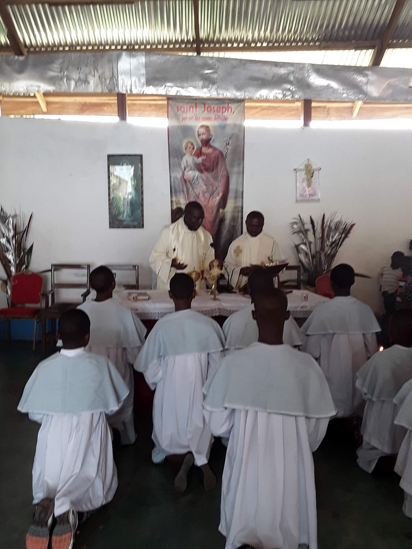 Et le travail de construction va s’ébranler. Au mois de Décembre 2004, c’est le lancement des quêtes en vue de la construction du sanctuaire. Les premiers poteaux sont implantés et ce chantier ne va plus s’arrêter.