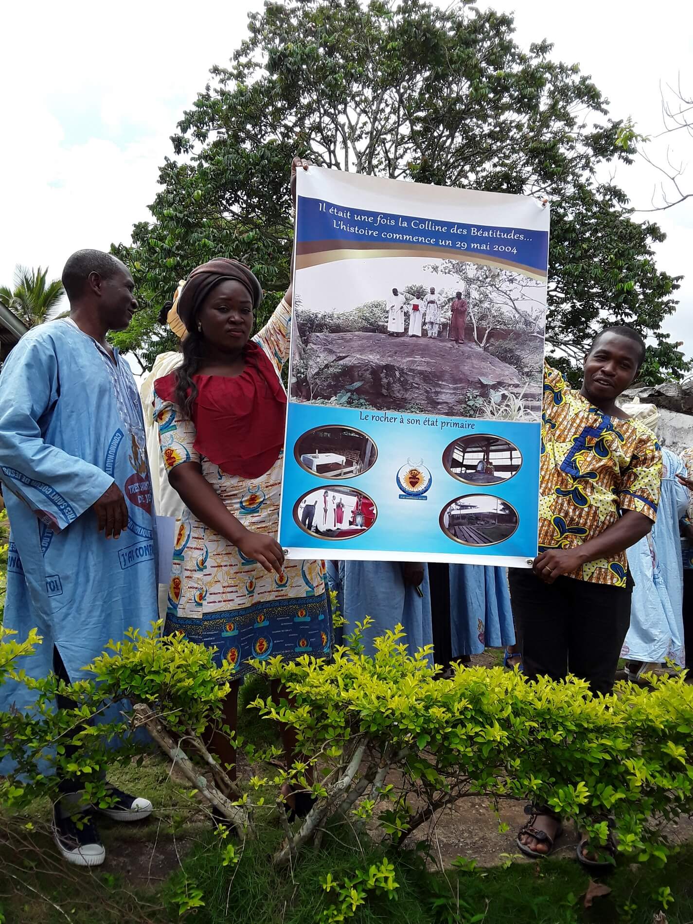 Ce fut un honneur pour la jeune communauté d’accueillir Monseigneur Victor TONYE BAKOT qui va profiter de son passage au sanctuaire pour bénir la colline et la consacrer « Colline des bienheureux ». Il déclarera ce jour là : « Je bénis tous ceux qui viendront prier sur cette colline ». Cette visite fut ressentie, non seulement comme une certaine reconnaissance de tout le travail qui est fait par l’équipe des Modérateurs et Conseillers qui entourent le Modérateur Général de la Communauté, et qu’accompagne spirituellement le Curé, mais aussi et surtout comme une invite à aller plus loin.